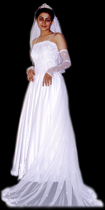 Weddings are special occasions in a woman's life.Rebecca D'Souza, an acclaimed designer in hi-fashion clothing, has been lucky to have worked in the UK with the White Rose Collection - an establishment dealing in fashionable bridalwear. Her creations are mostly all-white as tradition demands. Fabrics used are crinkle crepes, dupion silks, duchess satin, chiffons, organzas and tules. Her clients are invited for a detailed consultation which involves studying the bride's figure so as to give her the perfect cut to ensure that she looks her best on this special day.These gowns are carefully designed and crafted, hand embellished with embroidery, pearls, rhine stones, scalloped lace, hand-made organza roses and satin and silver ribbons. |